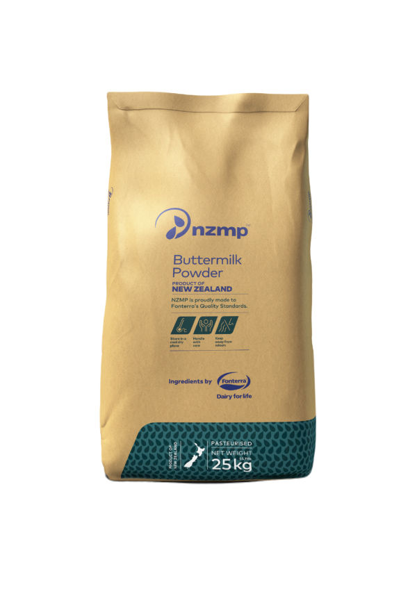 บัตเตอร์มิลค์ผงนำเข้าจากประเทศนิวซีแลนด์ ผลิตด้วยกรรมวิธีการอบแห้งแบบพ่นฝอย โดยบัตเตอร์มิลค์ที่ใช้มาจากกระบวนการในการผลิตครีมจากน้ำนมโคแท้